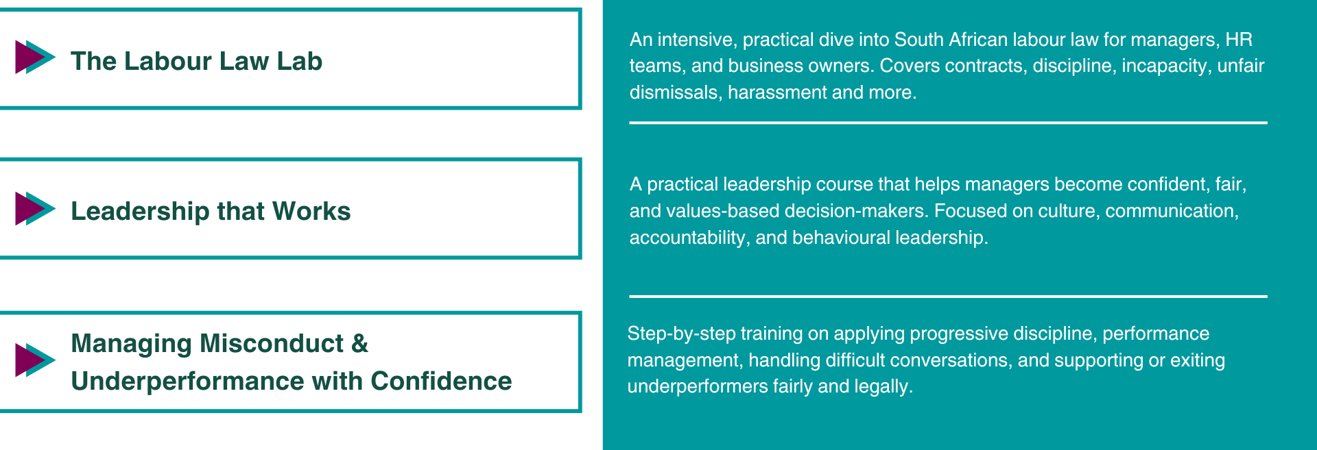 We specialise in practical, legally grounded leadership, management, HR /ER training and coaching.